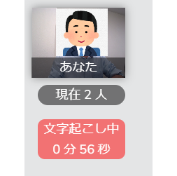 ※文字起こし機能利用中はメイン面接官のサブ映像下に利用時間が表示されます。