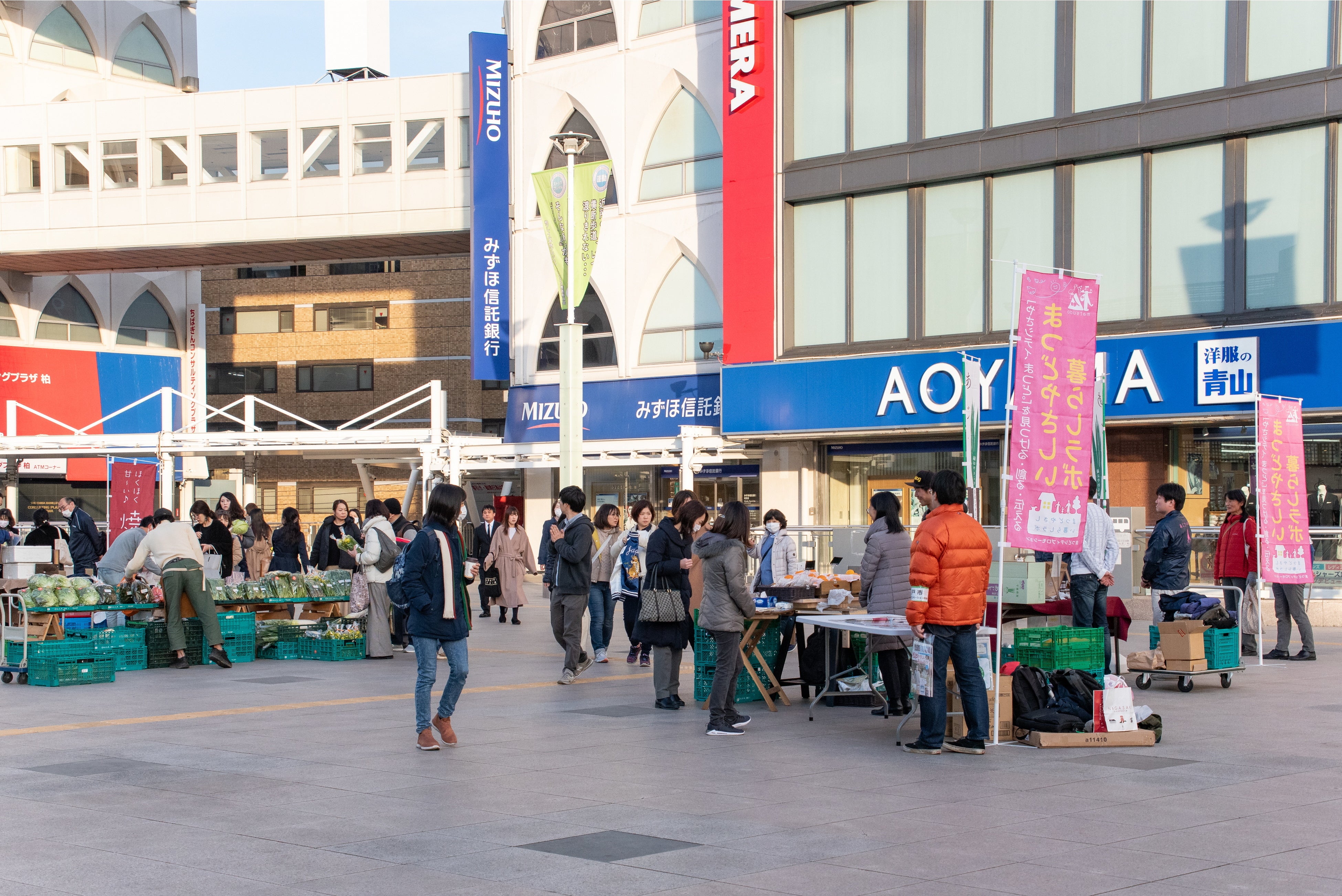 ※柏の「路地裏マルシェ」とは、平成28年(2016年)1月から始まった柏市周辺農家の方が開催するファーマーズマーケットで、現在は毎週水曜日に柏駅周辺の路地裏スペースと柏駅前の「KASHIWA W DECK」で開催しており、毎回多くの方々で賑わっている。