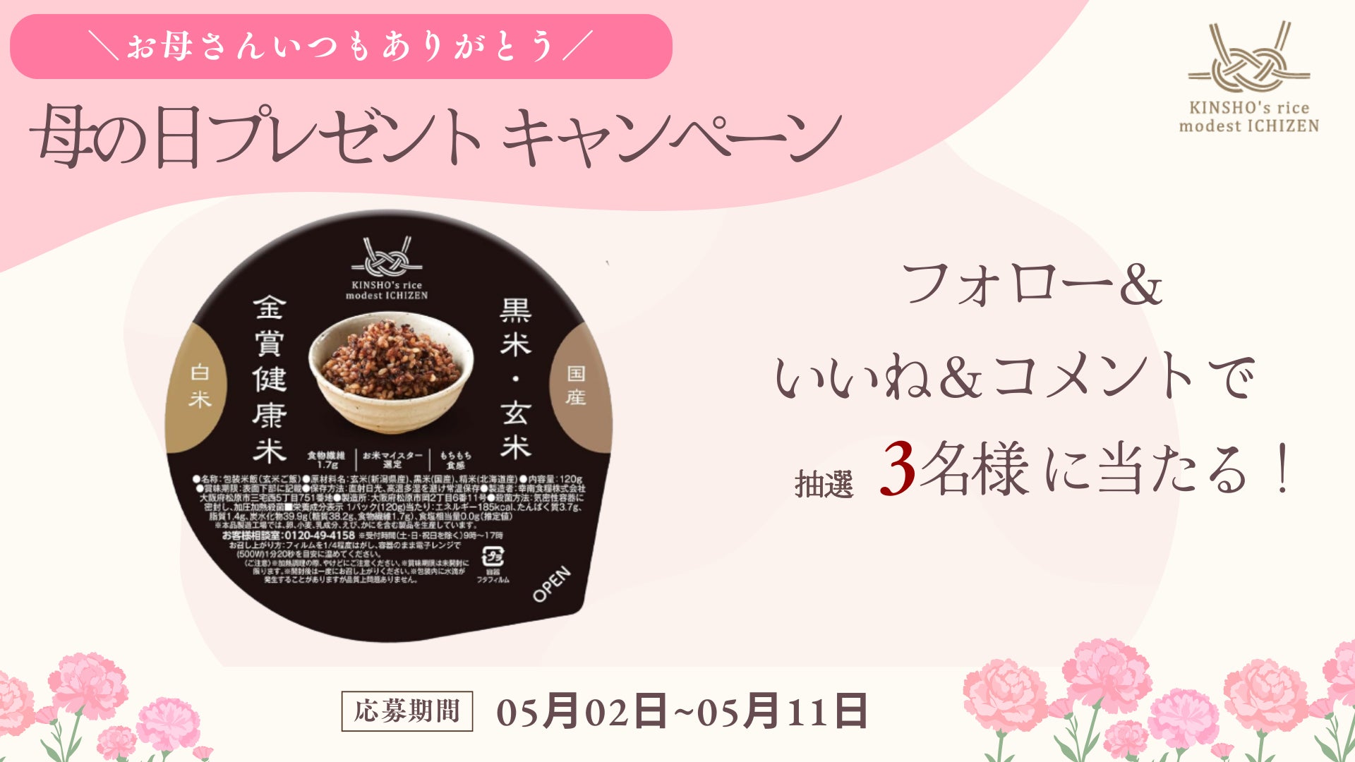 この度、株式会社IKホールディングス(本社:愛知県名古屋市 代表取締役社長:長野庄吾)の100%子会社で、テレビショッピング事業を行う株式会社プライムダイレクトでは、人気の『金賞の一膳 金賞健康米×黒米・玄米』があたる「母の日キャンペーン」を開催いたします。