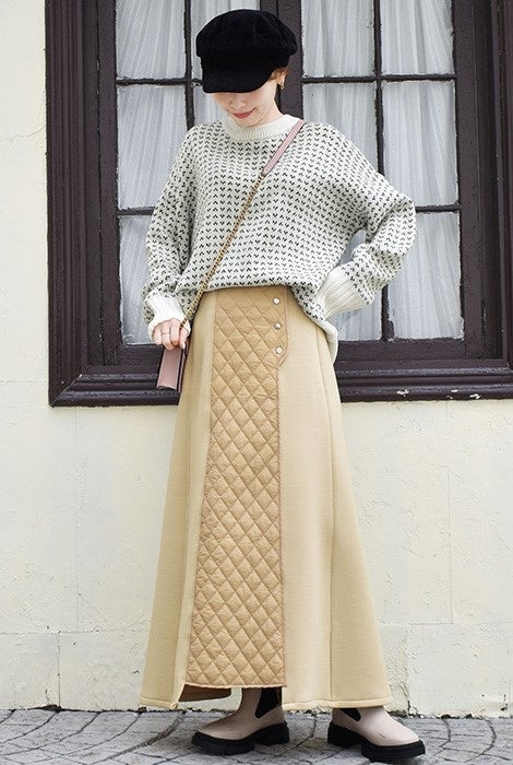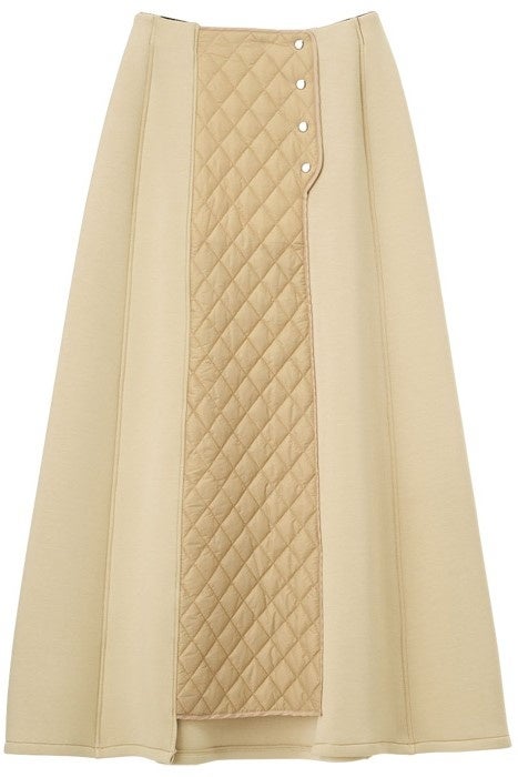 ■特長:きれい見えする段ボール素材のスカートを、キルティング素材で切り替えた着映えスカートです。