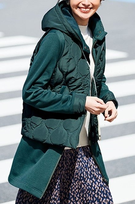今回は、カジュアルな印象のキルティング素材でありながら、大人っぽく着こなせる商品をピックアップ。スエードとキルトできれい見えする「フェイクスエードコンビキルティングパーカー」、3wayの着こなしで機能性抜群な「〈蓄熱わた〉ベスト付裏シャギーパーカー」、立体感のある美しいシルエットで着映えする「中わたキルト使いスカート」です。