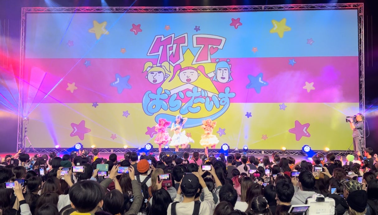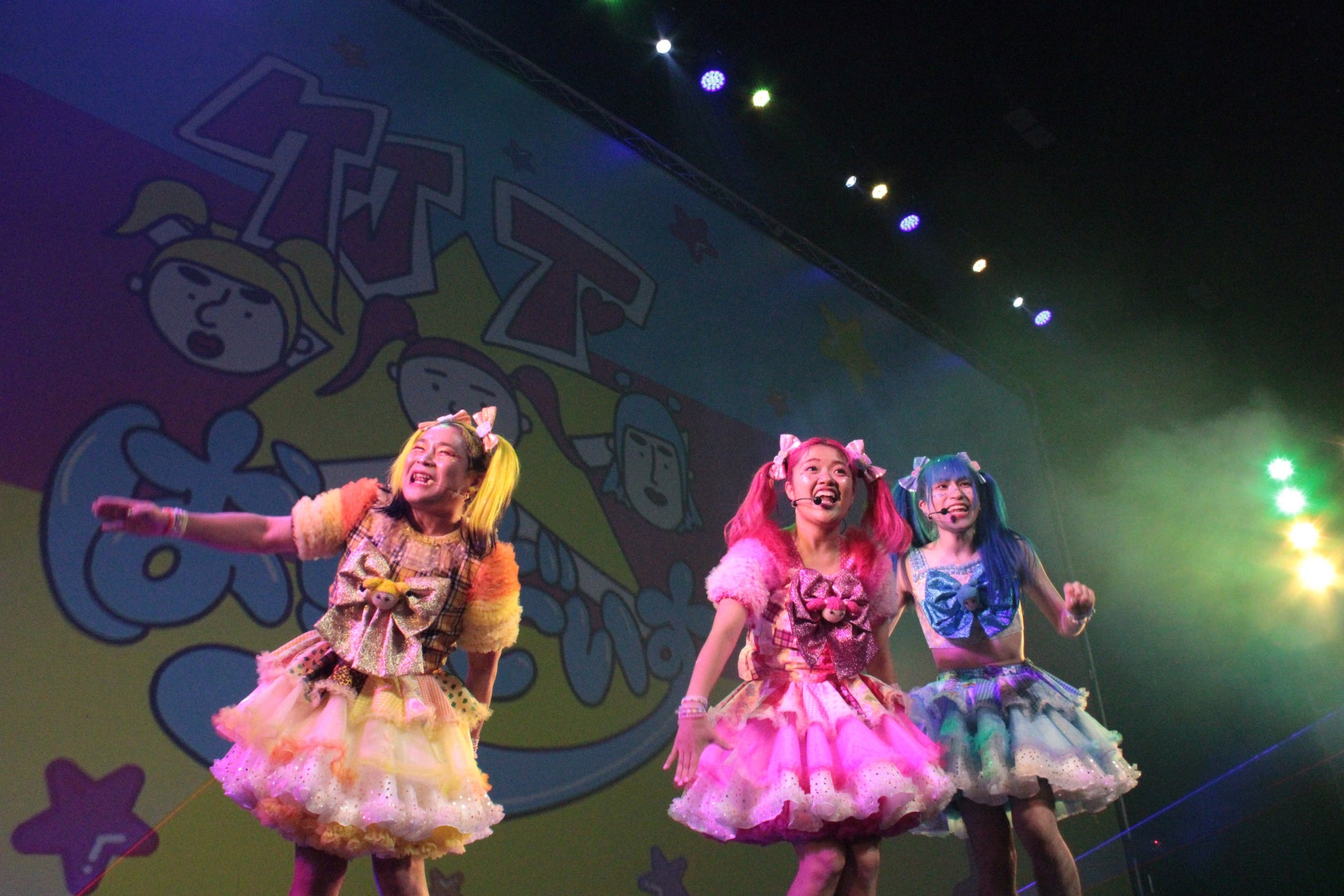 ステージに登場した、竹下☆ぱらだいすがパワフルな歌とダンス、客席との掛け合いで会場を盛り上げました。