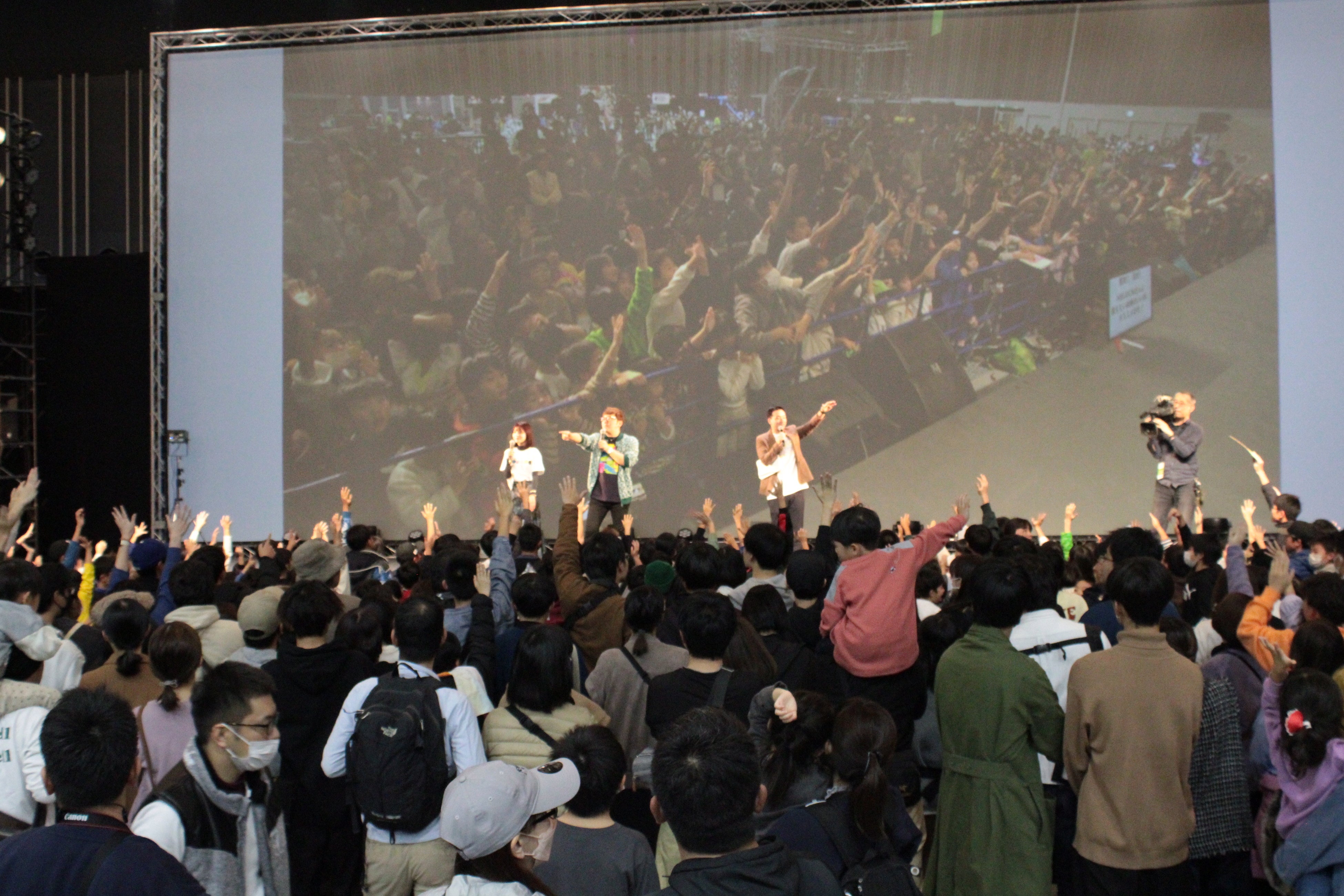 長崎スタジアムシティ建設現場からの生リポートを終え、イベント会場へHIKAKINが登場すると溢れんばかりの大きな歓声に包まれました。