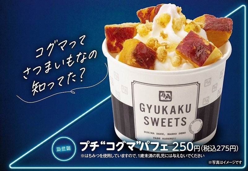 コグマとはさつまいものこと。蜜を染みこませたさつまいも、甘いハチミツ、グラノーラの食感が楽しいパフェです。