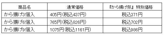 『から揚げ祭』の主な対象商品と価格(10%オフ)