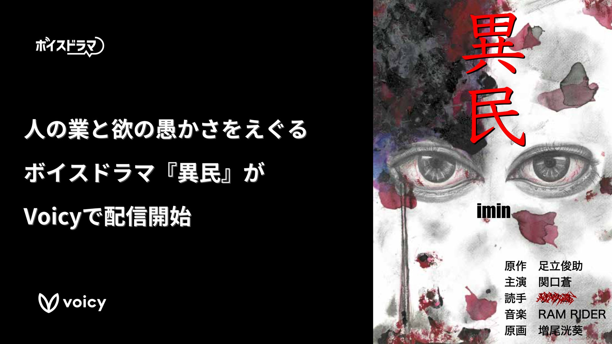株式会社Voicyが運営する音声プラットフォーム「Voicy」は、6月18日(火)より、新作ボイスドラマ「異民」を全話一斉配信することをお知らせいたします。