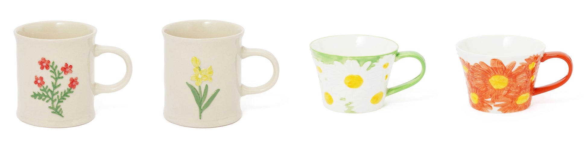 ハンドペイントでデザインされた柔らかい印象のマグです。ぽってりした手びねりのような形状が特徴です。