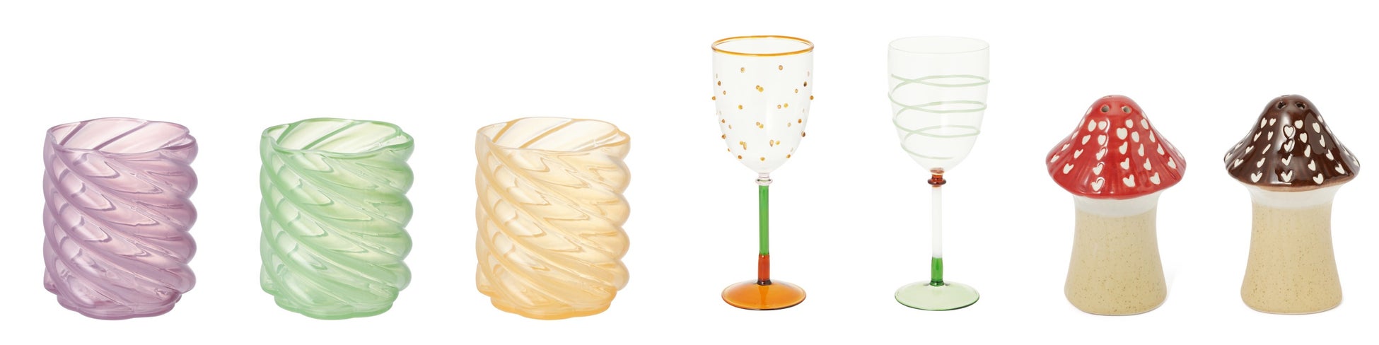ぽこっと浮き出た柄が特徴的なワイングラスです。色合いも鮮やかで食卓を華やかに演出します。