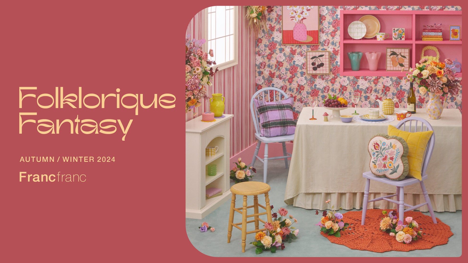 株式会社Francfranc(本社:東京都港区、代表取締役 社長執行役員 佐野一幸)が運営する、インテリアショップ『Francfranc(フランフラン)』は、2024年8月2日(金)より全国のFrancfranc店舗※1、およびFrancfrancオンラインショップにて、2024年Autumn&Winter コレクション『FOLKLORIQUE FANTASY(フォークロリック ファンタジー)』を展開します。