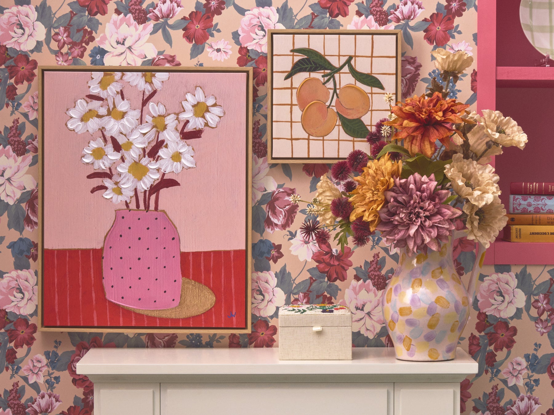 貼ってはがせるウォールペーパーです。手軽にお部屋をメークアップできます。華やかで、ロマンティックさを感じる花柄や手描き調が楽しいストライプ柄のウォールペーパーはアクセントクロスとしてもおすすめです。