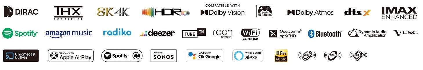 HDMI®の最新規格2.1に対応。最新映像フォーマットに対応することで映画・ゲームコンテンツを最高画質で楽しめます。本機ではHDMI入力3端子がHDMI2.1、8k/60Hz、ダイナミックHDRフォーマットのDolby VisionとHDR10+に対応、その他3端子はHDMI2.0対応となります。