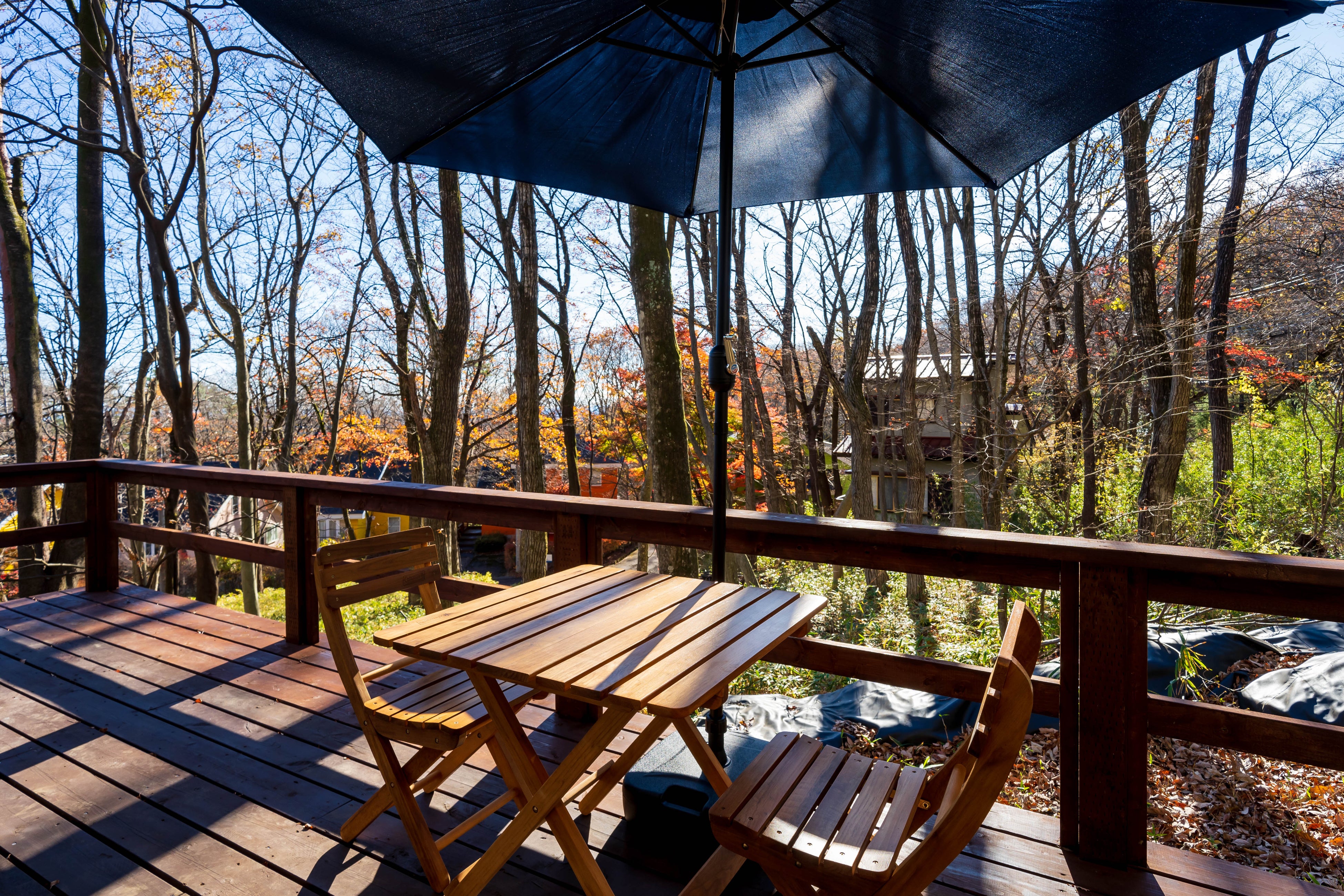 30㎡超の広々としたウッドテラスは、那須高原の自然の中で森林浴を楽しめる癒しの空間です。