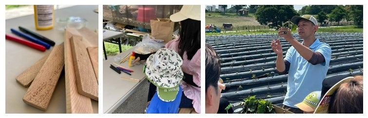 名古屋地区で年間約700棟もの建築現場(2022年名古屋支社実績)から出るフローリングの端材を活用したネームプレートを作るワークショップも実施しました。各自で植えた苗を忘れないよう、名前や好きな絵を描いてもらったオリジナルのネームプレートを植えた苗の横に建て、10月に実施する芋掘り体験を楽しみに来ていただきます。