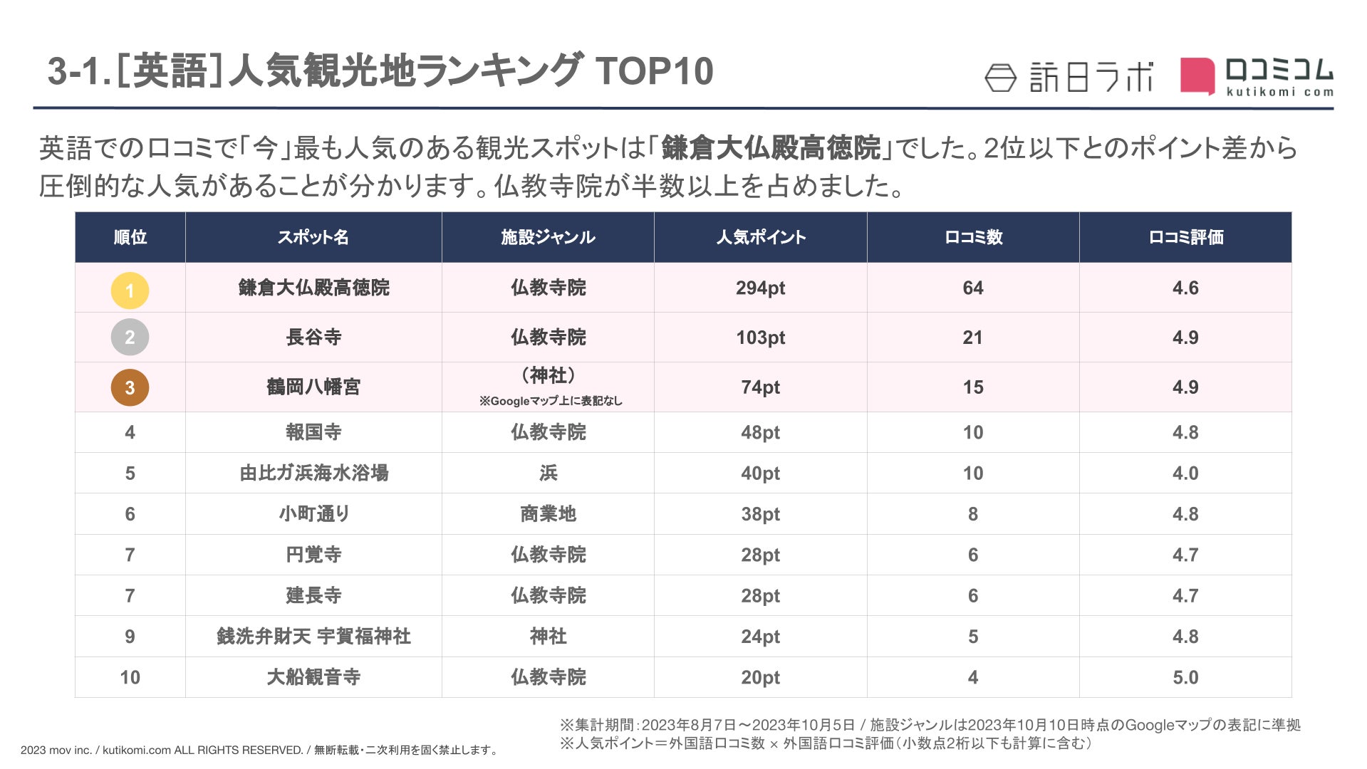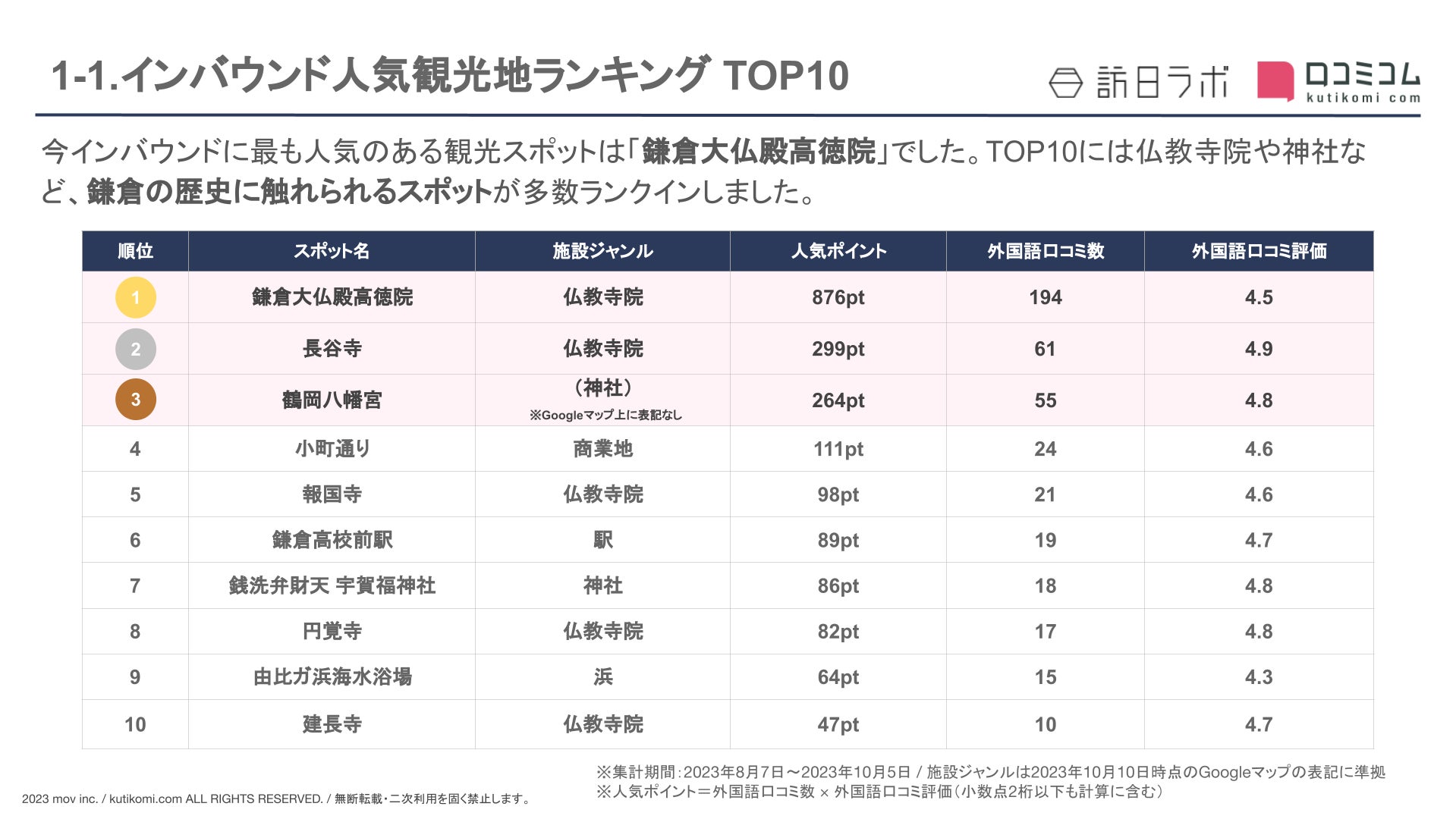 【独自調査】インバウンド人気観光地ランキング鎌倉編:コロナ後 最新の訪日客の支持を集めたスポットTOP10を発表 #インバウンドMEO