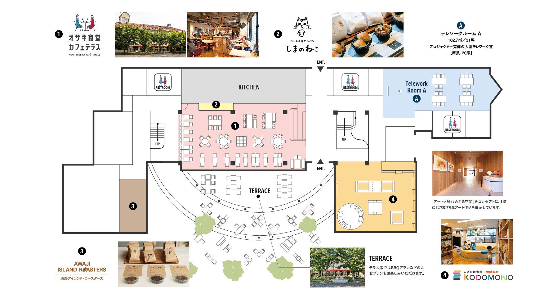 企業や起業家のワーケーション・サテライトオフィス利用や淡路島でのビジネスやお試し移住体験に向けた中長期滞在先など、多様なニーズに応える施設を創出