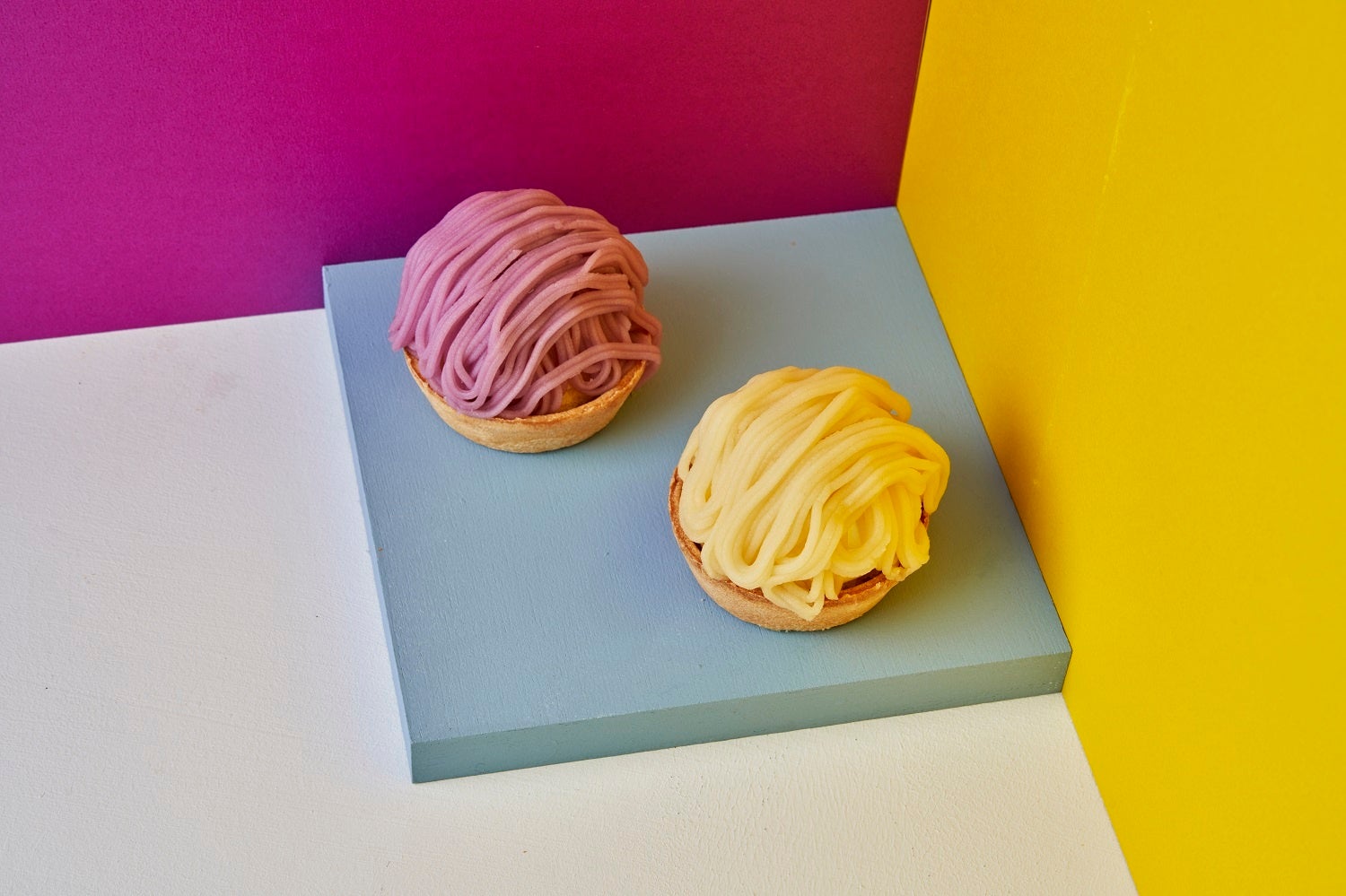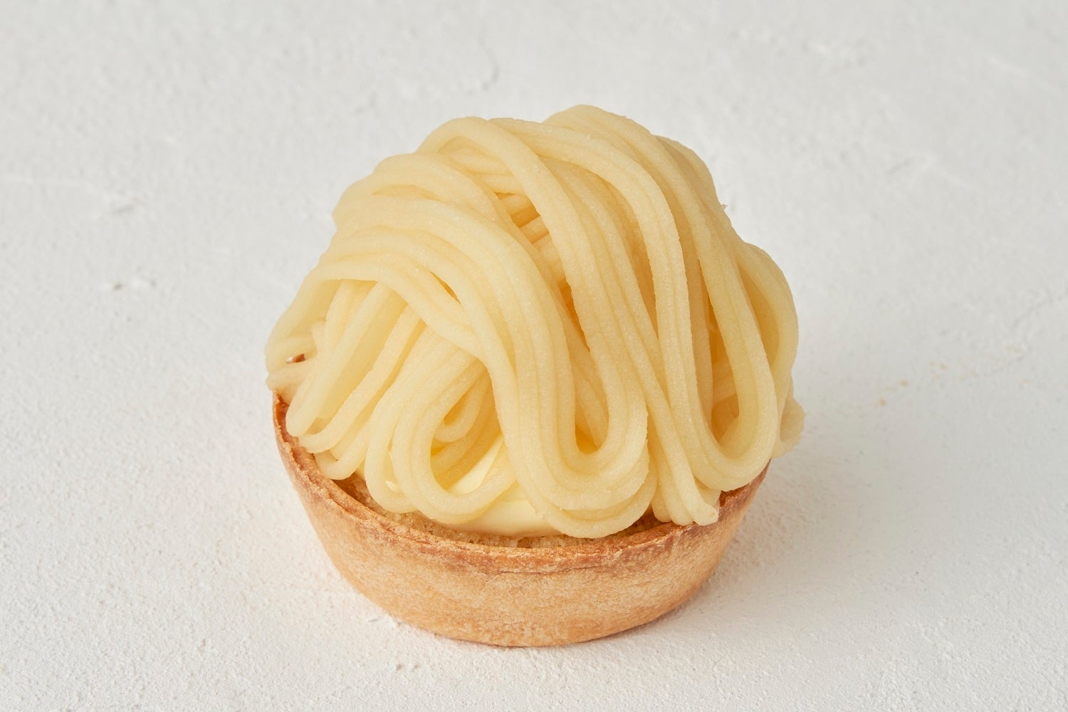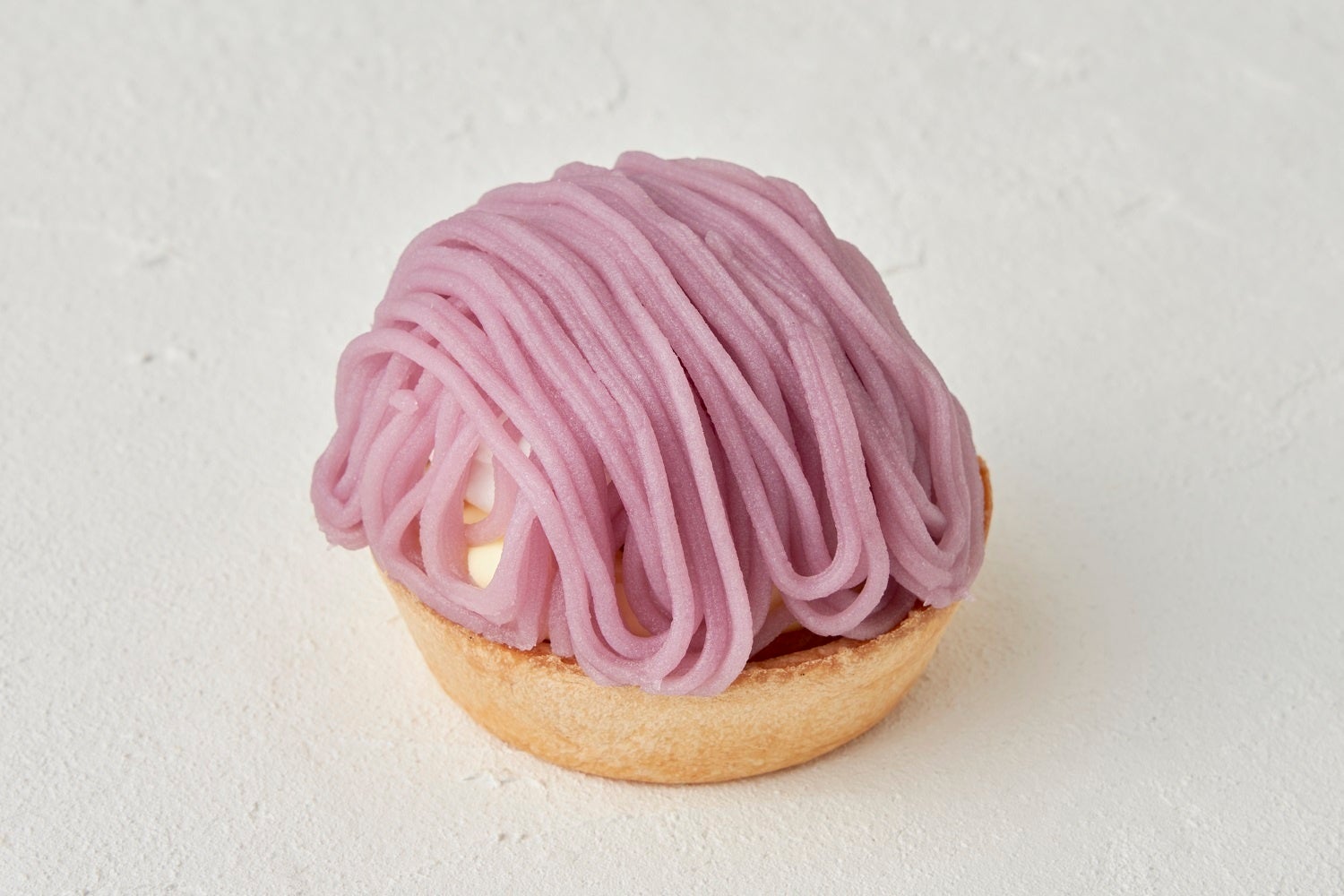 サクッと軽いタルト生地にふわふわのスポンジ生地をのせて、むらさき芋のペーストをたっぷり絞りました。