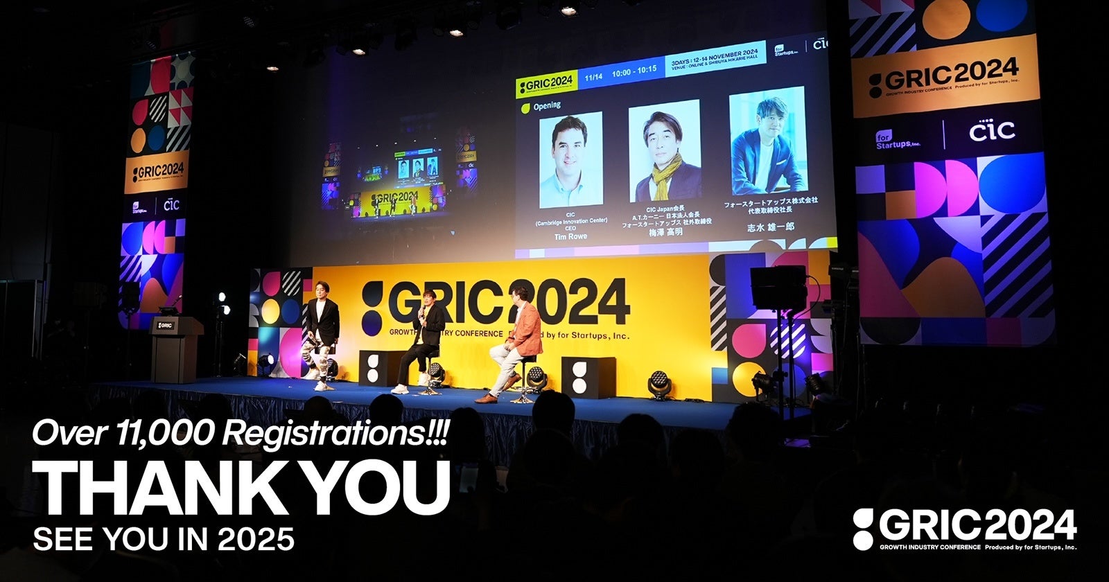成長産業支援事業を推進するフォースタートアップス株式会社(本社:東京都港区、代表取締役社長:志水雄一郎 以下、フォースタートアップス)が11月12日(火)から14日(木)に開催した「GRIC2024」の開催レポートをお届けいたします。