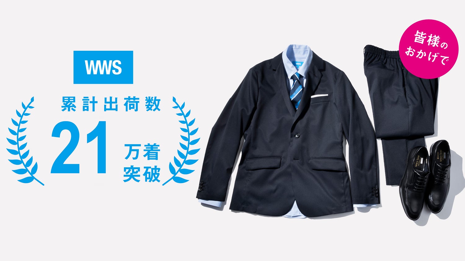 この度、2023年4月の売上がコロナ前の2019年同月比700%を達成し、累計販売数が21万着を突破したことをお知らせいたします。さらに、2021年4月にオープンした旗艦店「WWS Flagship Store 新宿」の2023年4月の店舗売上が過去最高となり、前年同月比150%を達成しました。これらの理由として、自宅洗濯機で丸洗いできてシワになりにくいことから従来のスーツにかかるクリーニングコストやアイロンがけなどの家事時間がカットでき、タイパ(タイムパフォーマンス)やコスパが良い点が好評であることや、出張や外出の需要の増加に比例して快適に着用できる機能性スーツの需要が高まっていることが挙げられます。