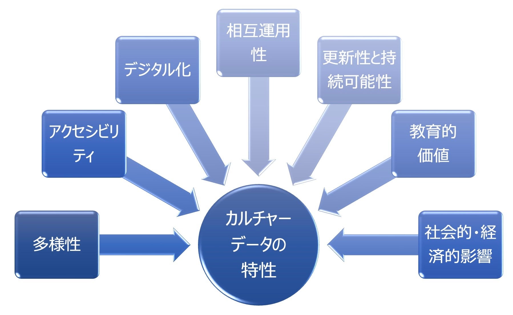 カルチャー分野のオープンデータには、いくつかの特徴があります。これらの特徴は、文化的資源の保存、普及、活用を目的としており、以下のようになります。