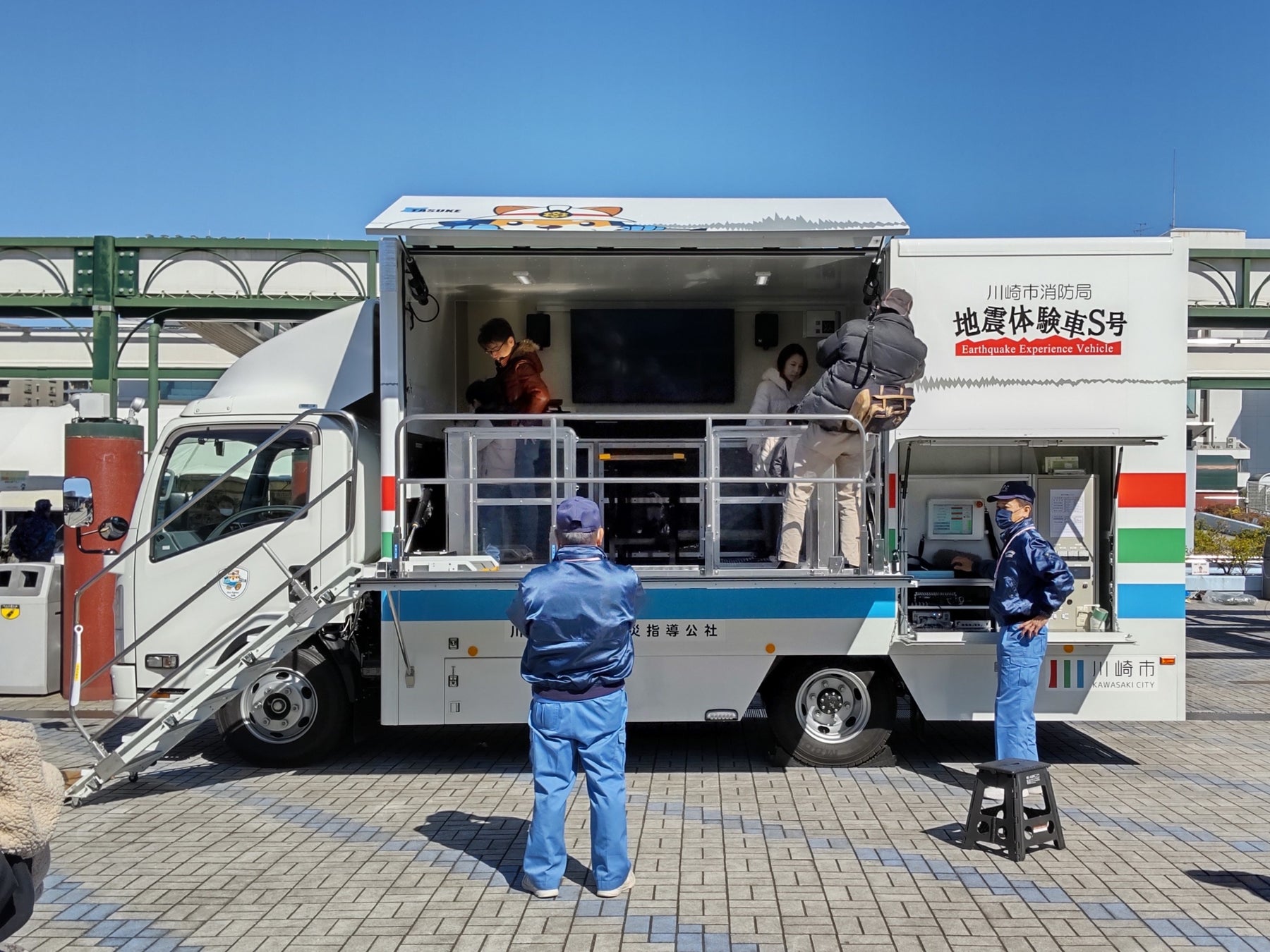 【川崎消防署】起震車による地震体験、水消火器体験、はしご車乗車体験(※)など ※会場での抽選制