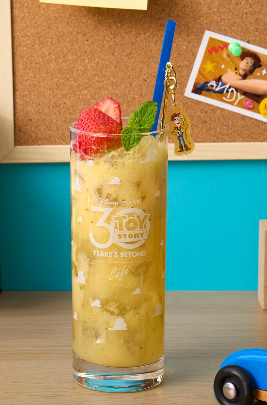 ウッディをイメージしたオレンジ&リンゴジュースベースに、バナナといちごの果肉が入ったジュースです。