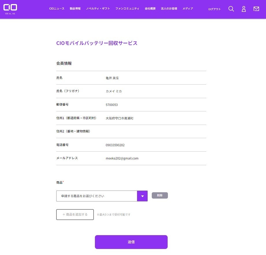 CIO公式ホームページからログインをしていただき、手順に則り申請をしていただくことで、回収が可能となります。回収にご協力いただいた方には弊社公式Amazon店でご使⽤いただけるクーポンを発⾏しておりますので、是非ご活用ください。