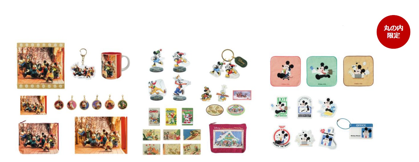 MARUNOUCHI BRIGHT HOLIDAY2025限定デザインのディズニーグッズが登場!キービジュアル、クリスマスモチーフ、ユーモラスな働くミッキーなど、ここでしか手に入らないグッズを揃えています。日常使いしやすいタオルやマグカップ、ステッカー等をイベントの思い出に持ち帰ってみては?