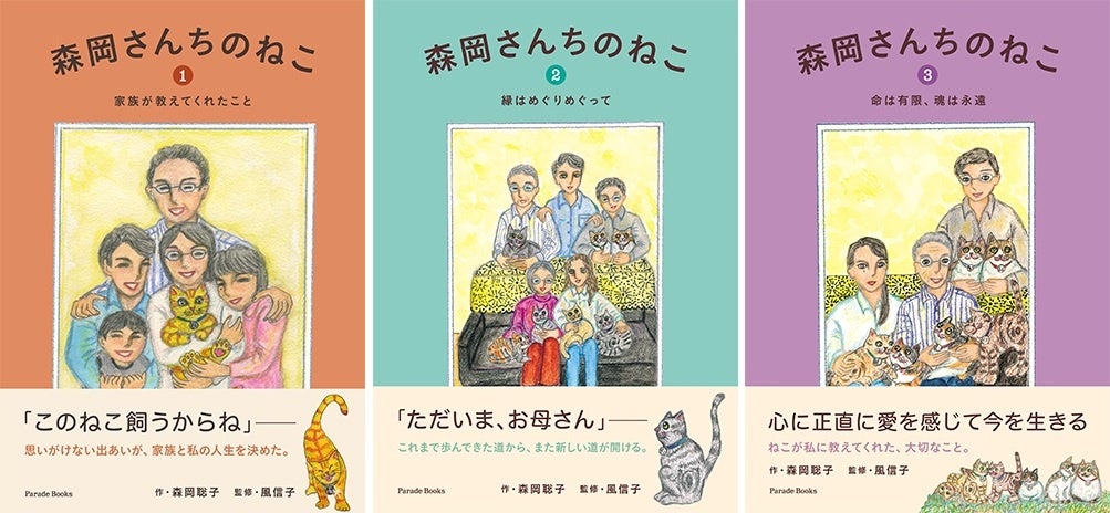 ねこを家族に迎えて、働くことや生きること、そして愛することを確かめていった森岡家の物語。ねことの暮らしを応援し、ねこのいる人生を讃える、大人の絵本『森岡さんちのねこ』シリーズ①②③発売!