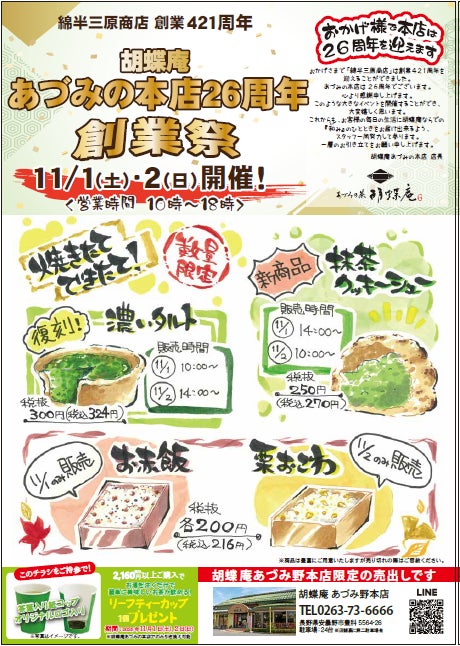 ・胡蝶庵直営7店舗(あづみの本店を除く):2025年11月8日(土)~9日(日)