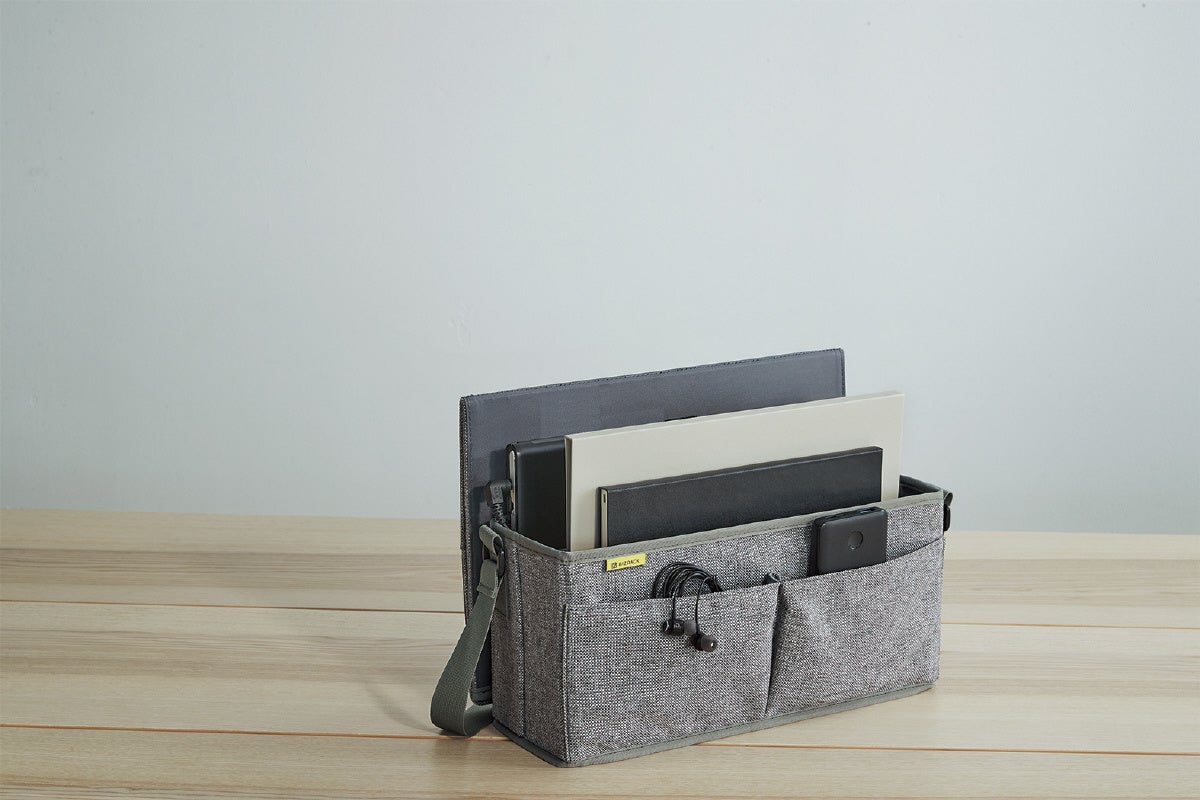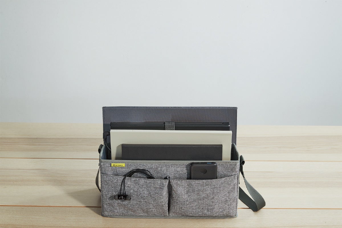 今回発売する「PC・ツール収納バッグ<BIZRACK>」は、仕事に必要なツールをサッと出し入れでき、収納時の見た目もスッキリとインテリアになじむワークツール収納バッグです。