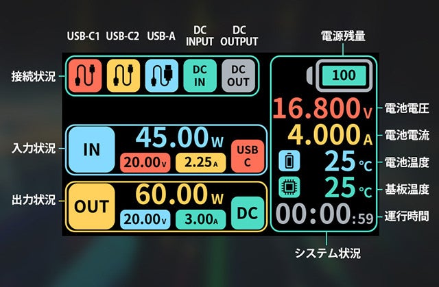 フルカラーのIPS方式パネルを搭載し、DC出力を3.3~25.2Vで調節可能で遊び心満載です。