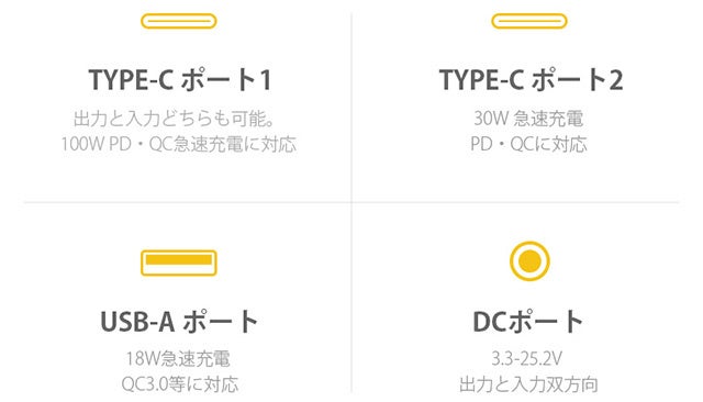 また、電圧を調整できるDCポート(3.3~25.2V)も備えています。