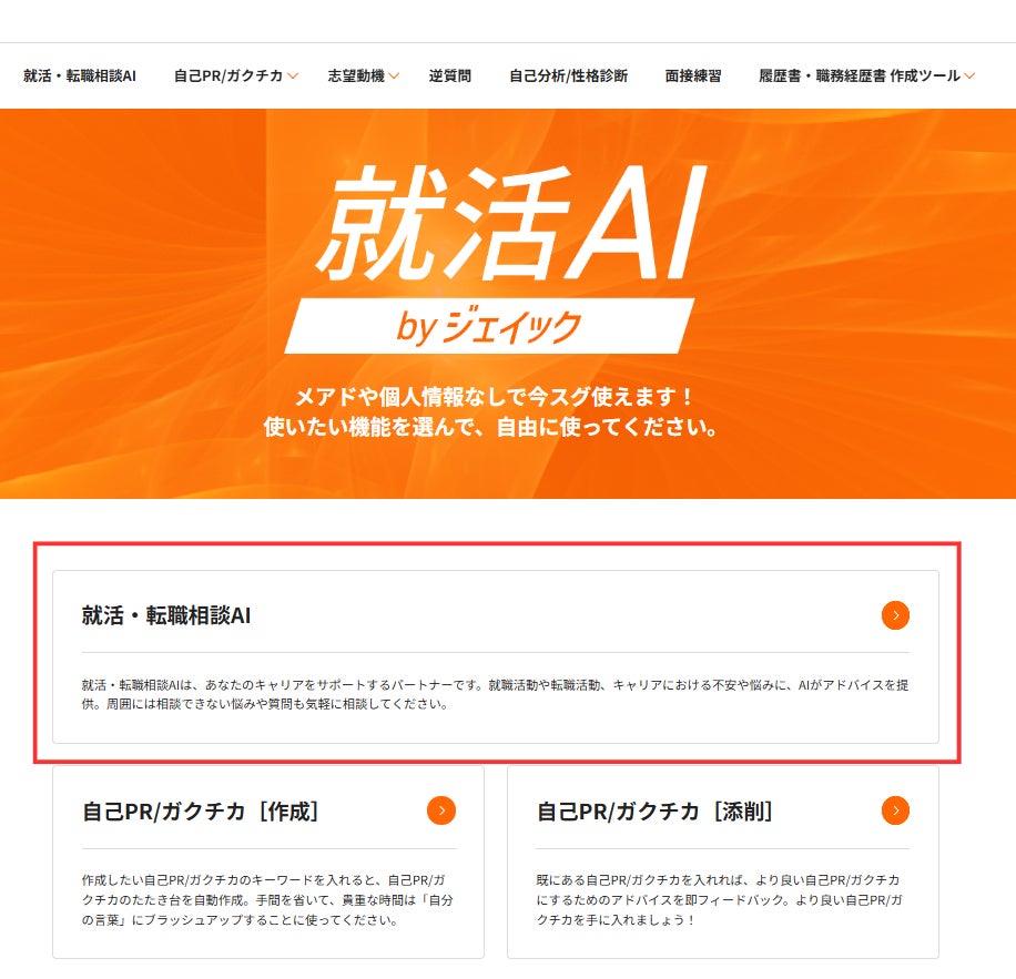「就活AI」トップページにある「就活・転職相談AI」のメニューを選択してください。