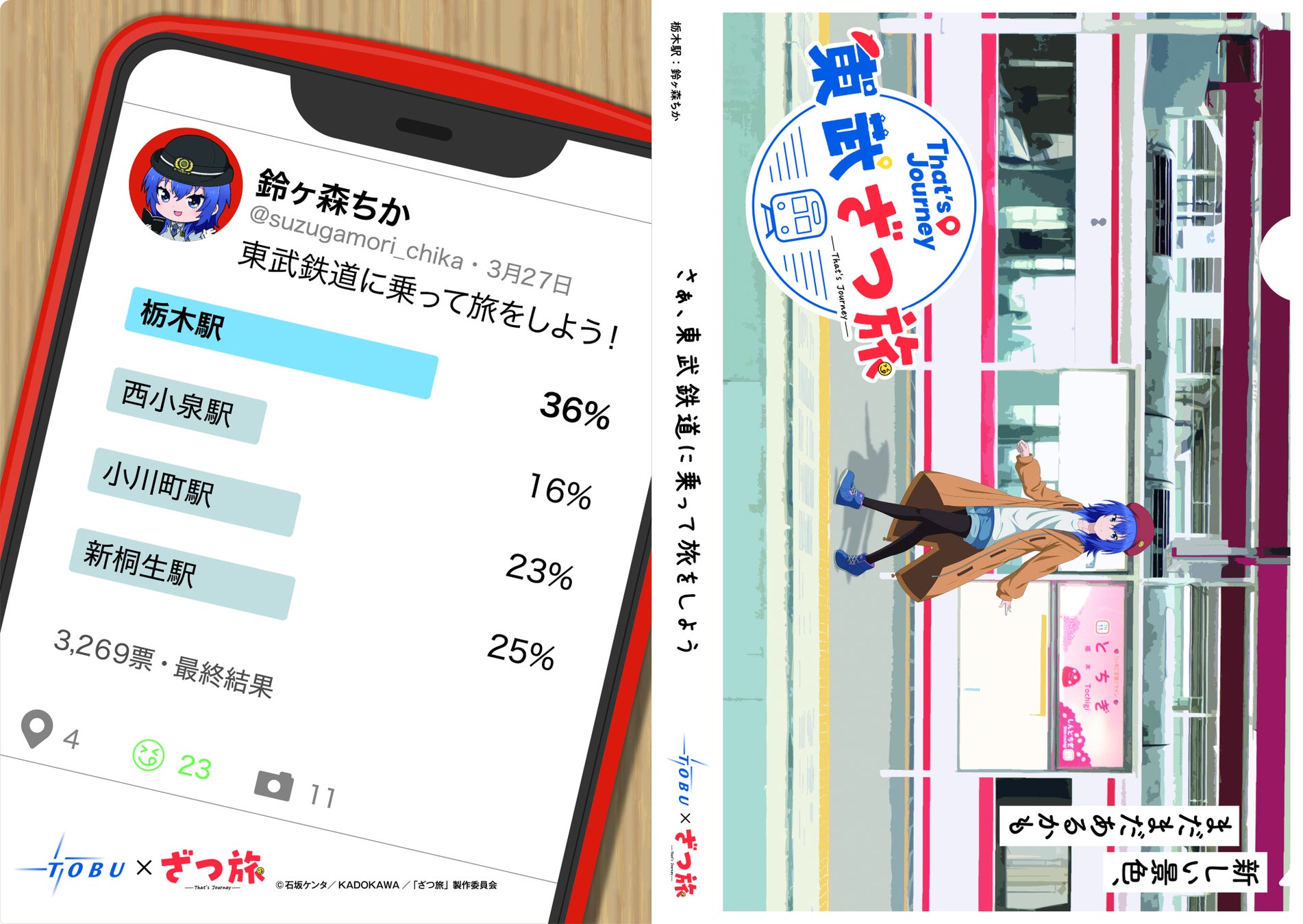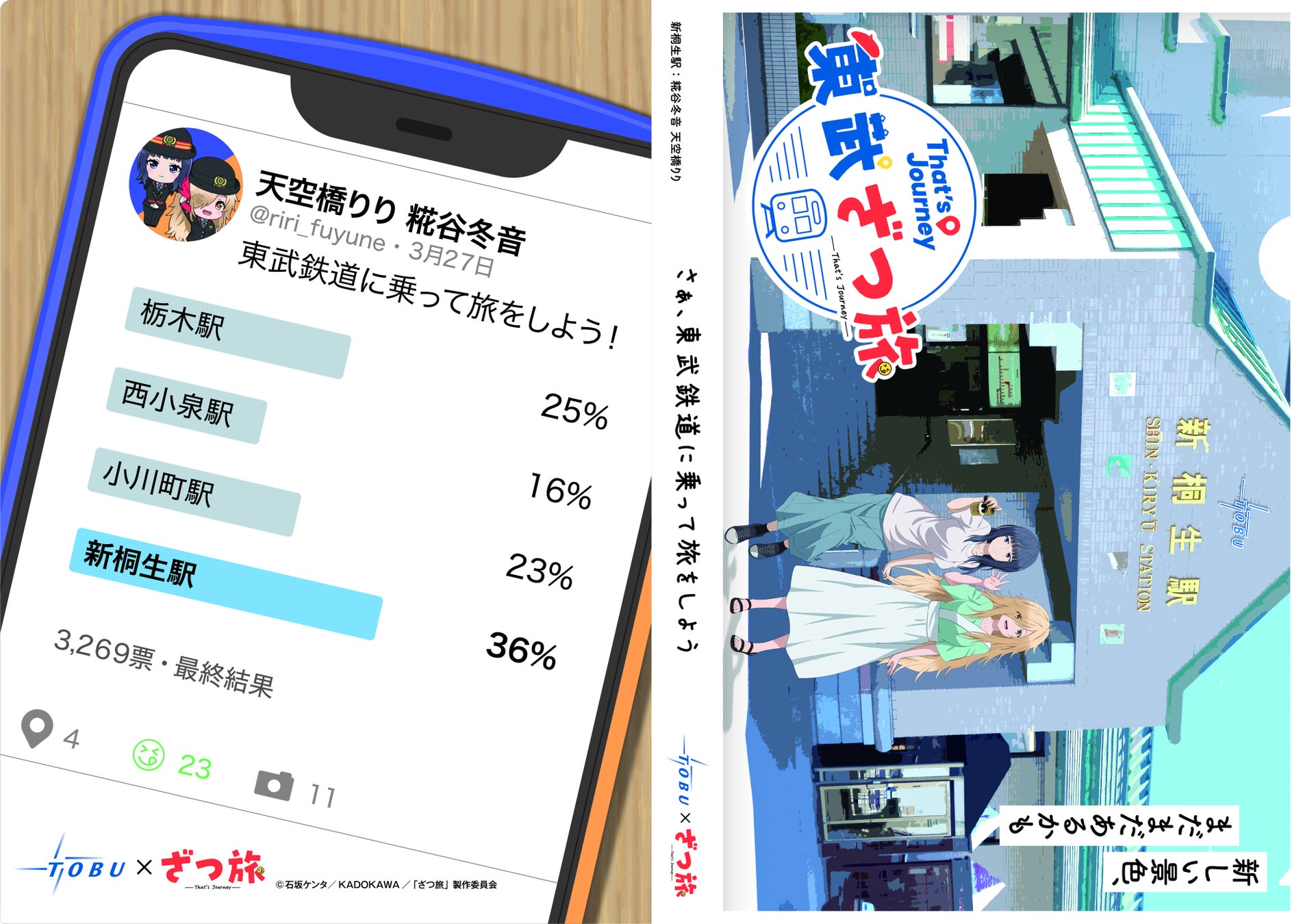 東武鉄道株式会社(本社:東京都墨田区、社長:都筑豊)と株式会社KADOKAWA(所在地:東京都千代田区、取締役 代表執行役員 CEO:夏野剛)は、2025年4月7日(月)よりAT-X,BS11,TOKTO MX,読売テレビほかで放送を開始するテレビアニメ「ざつ旅-That’s Journey-」とのコラボレーション施策として、ランダムで行き先が決まるリアルざつ旅体験イベントを3月27日(木)より実施します。