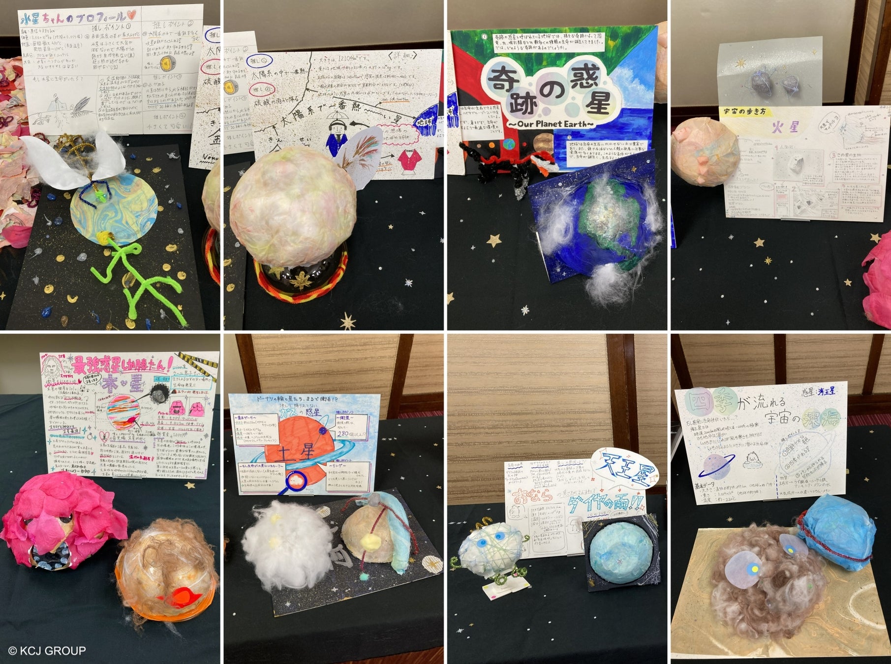 <各チームが制作した惑星紹介ポスターと模型「宇宙マップ」>