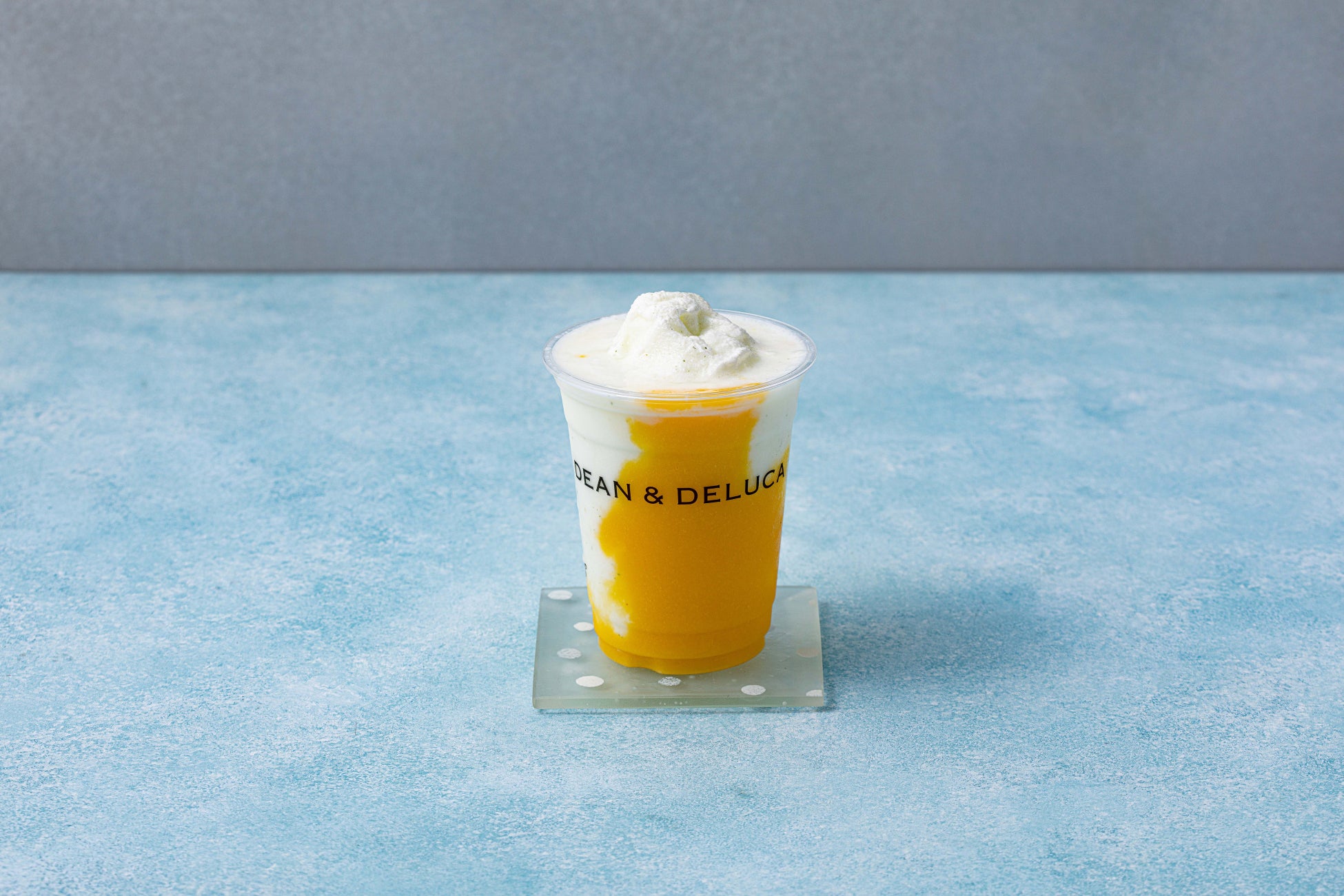 「飲むスイーツドリンク」をコンセプトに開発。果肉がたっぷり入ったマンゴーソースと自家製マンゴープリンに爽やかな味わいのヨーグルトスムージーをあわせ、マンゴーラッシーのような味わいにしました。上にはソフトクリームをトッピングし、パフェのようにスイーツとしても楽しめるドリンクです。 ※販売期間:7/3〜9/10