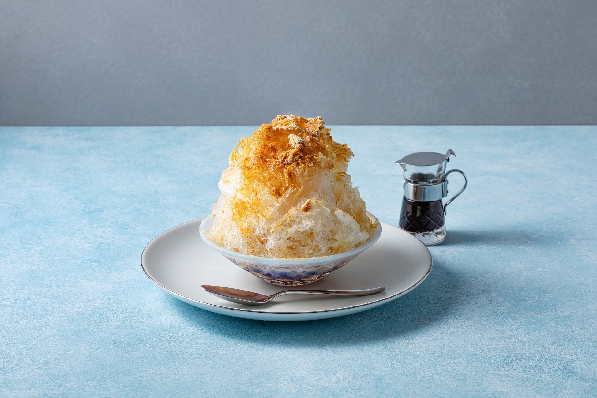日光の老舗蔵元の天然氷を使い、綿菓子のようなふわふわ食感を実現。上には、三重県産オーガニックきな粉のクランブル、黒蜜ソースを。中には、黒蜜ゼリーやパンナコッタ、きな粉クリームが隠れ、食べ進めるごとに異なる食感と香りが楽しめます。 ※販売期間:販売中〜8/31(氷がなくなり次第終了)※販売時間:13:30〜17:30