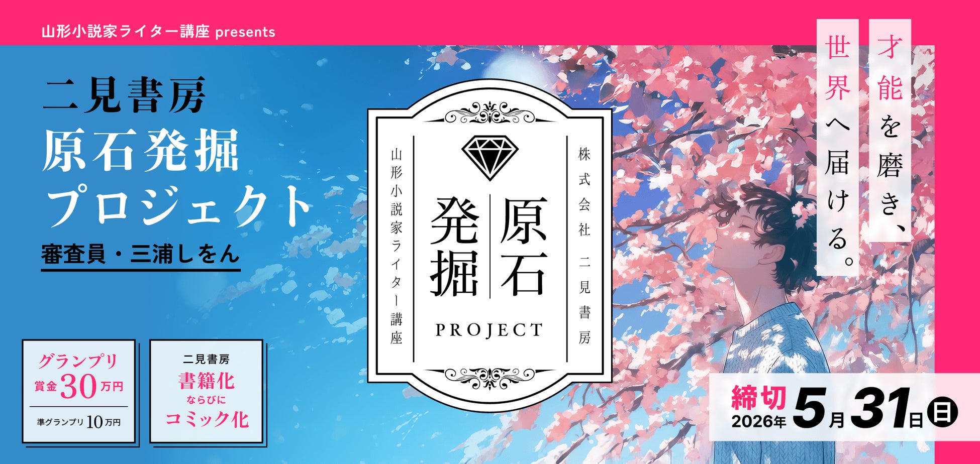 二見書房「原石発掘プロジェクト」(山形小説家・ライター講座presents)の審査員が確定しました! テーマはBL。グランプリ作品は書籍化、コミック化を確約。グローバル展開も支援