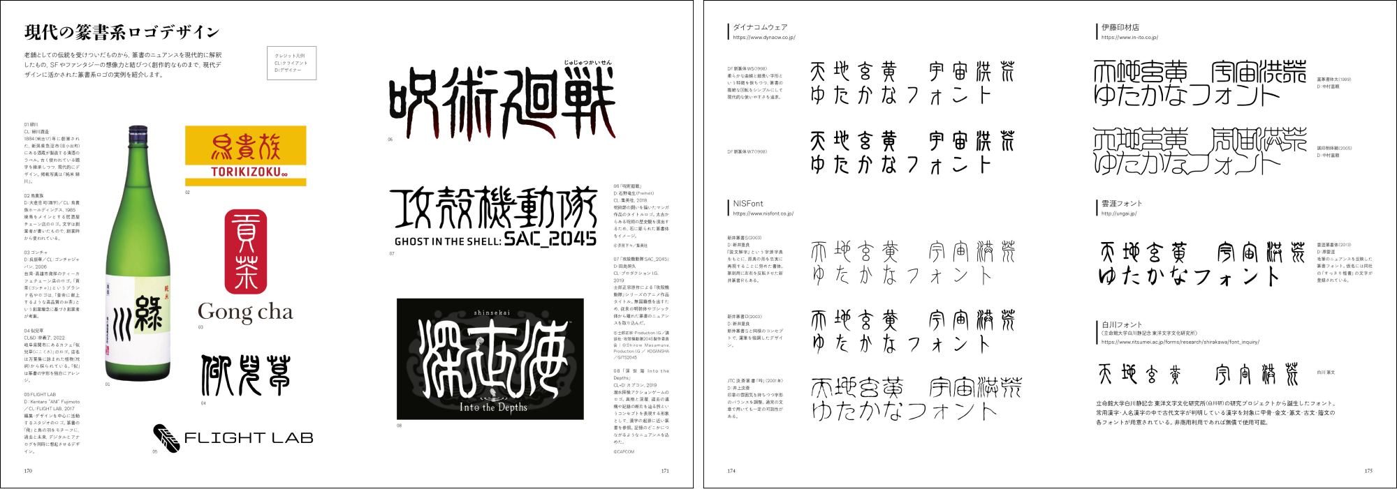 はじめに 歴史と基本:漢字の誕生/篆書と現代/篆書デザインの用具/用筆と運筆/篆書の構成 ●応用と展開/瓦当/江戸の篆書デザイン/街に拾う篆書/グラフィック・エレメントとしての篆書/素材によるバリエーション ●書体デザイン:ひらがなのデザイン/カタカナのデザイン/漢字のデザイン/ ●篆刻への招待:篆刻とは/用具/さあ彫ってみよう ●増補:古賀弘幸「「篆書デザイン」のありか─聖性と装飾」/現代の篆書系ロゴデザイン/篆書系フォントの世界