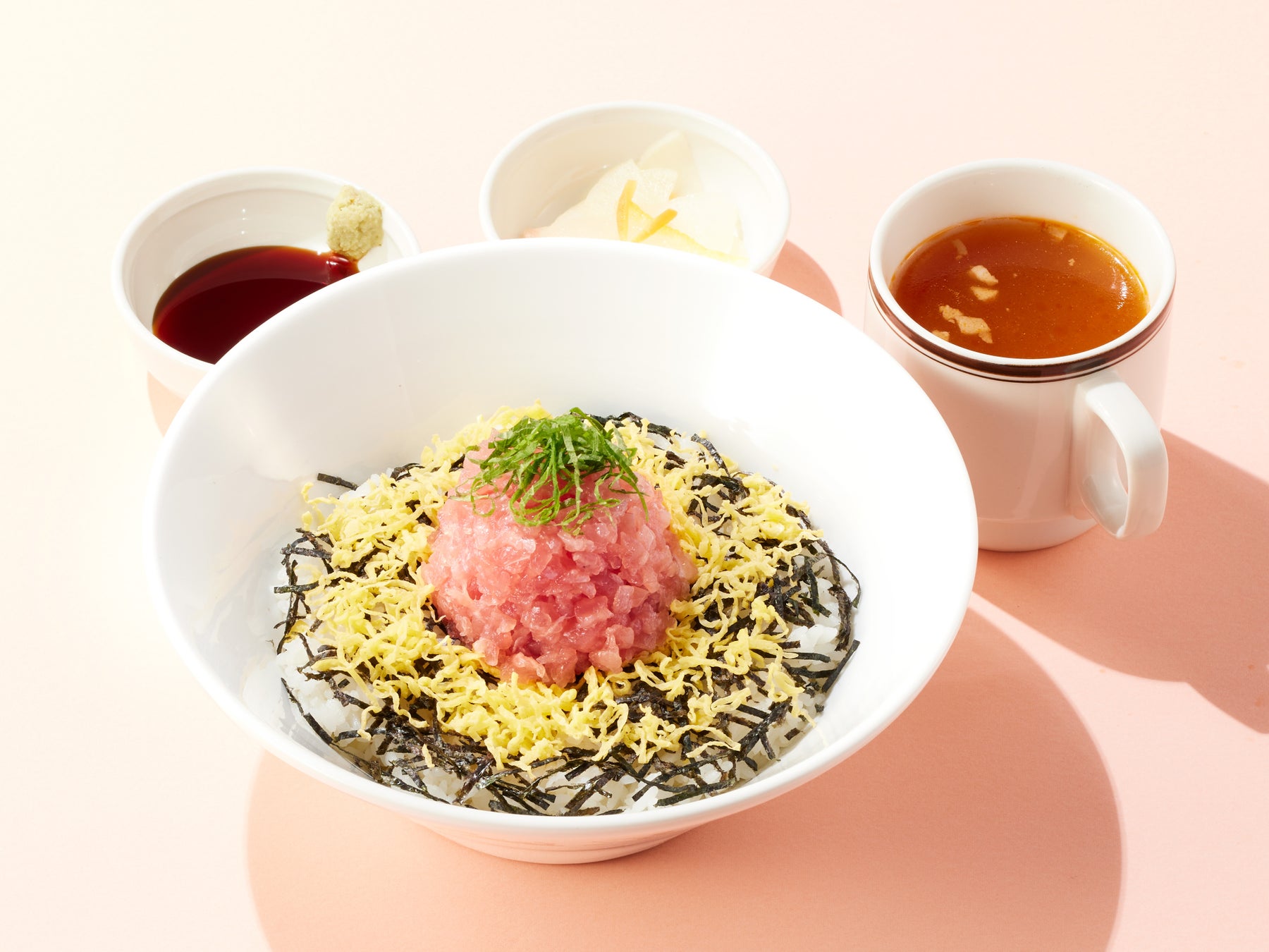グランドメニューで人気の“まぐろたたき”を使った丼がランチにも登場!粗めにたたいたまぐろと錦糸卵に、爽やかな香りの大葉を合わせ、さっぱりとした味わいに仕上げました。春らしい華やかな見た目にもご注目ください。季節の小鉢付き、ご飯大盛無料です。