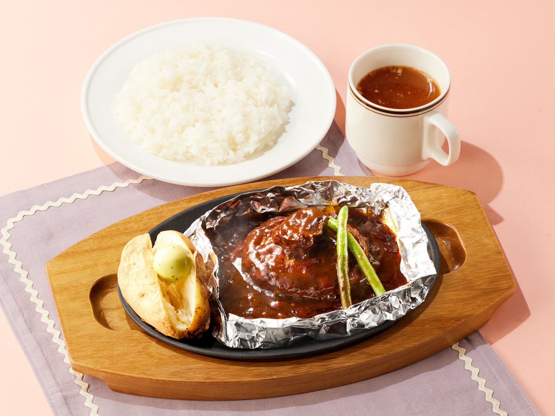 ココスの定番“包み焼きハンバーグ”がランチに初登場!一つひとつホイルで丁寧に包み、さらにオーブンで蒸し焼きにすることで肉汁たっぷりのハンバーグに仕上げました。じっくり煮込んだ柔らかいビーフやマデラ酒がほんのり香るシチューソースと一緒にご堪能ください。ライス大盛無料です。
