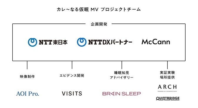 東日本電信電話株式会社(代表取締役社長 澁谷直樹、東京都新宿区)および株式会社NTT DXパートナー(代表取締役社長 遠藤玉樹、東京都新宿区)、株式会社マッキャンエリクソン(代表取締役社長 兼 CEO 森浩昭、東京都港区)は、日本の睡眠課題解消に対してさまざまな企業が共同で睡眠改善に資する新規事業創出やサービス開発、イベントを企画する仮想コミュニティ“Sleep Network Hub 「ZAKONE(ザコネ、以下「ZAKONE」)」”( https://zakone.jp/ )のグランドオープン(2022年9月3日)後、初となる共創施策として 、“視聴しながら仮眠〜起床を経ることでクリエイティビティを向上させる仮眠ミュージックビデオ「カレ〜なる仮眠」( https://youtu.be/LJP3vvCMmGg )”を2022年10月26日に公開しました。