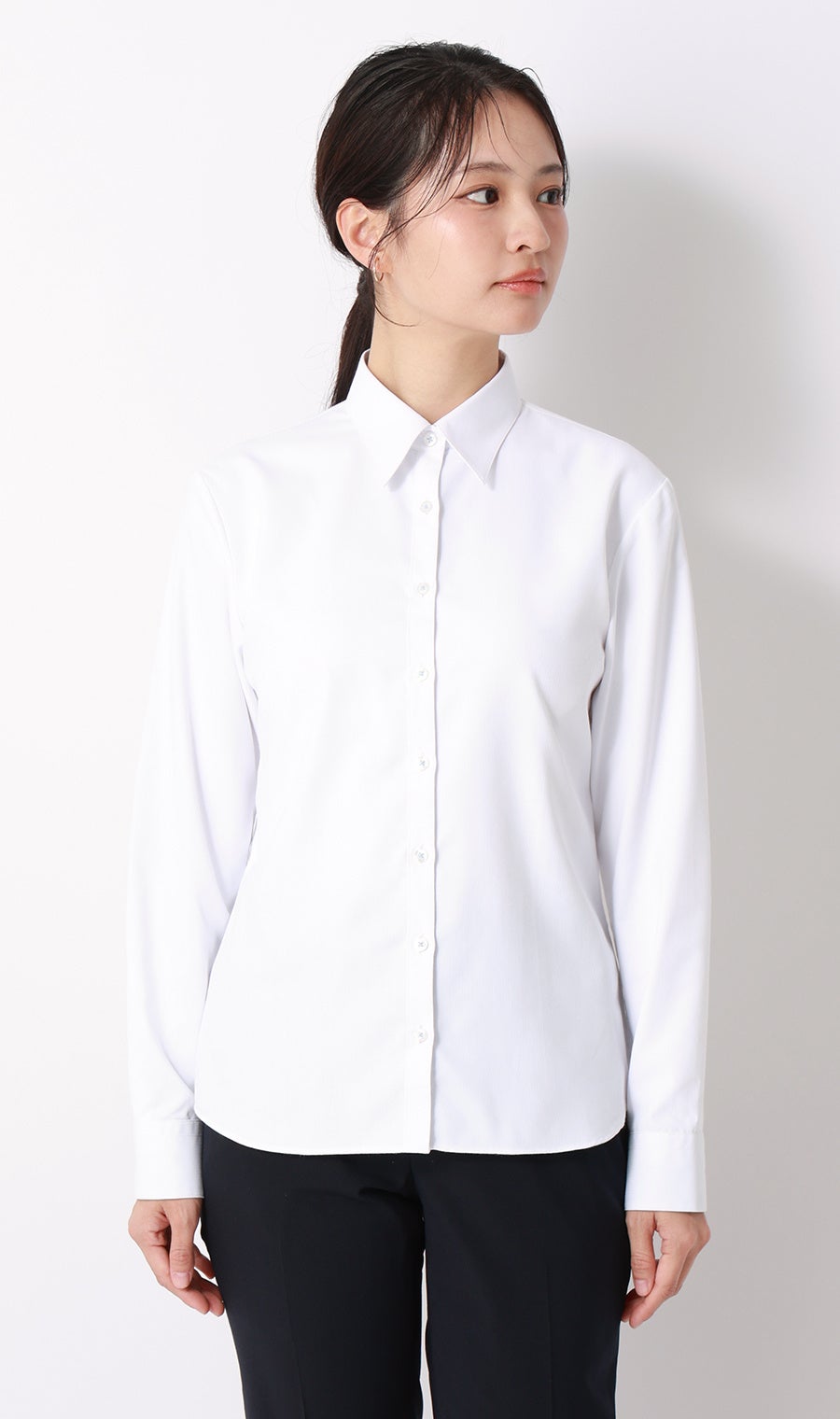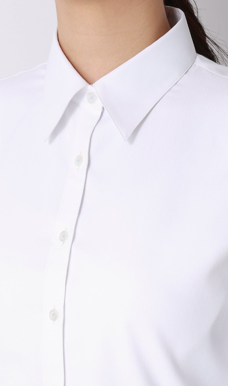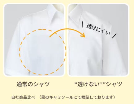『透けないシャツ』は、防透け指数93.0という高い防透け性能と遮熱・形態安定性を兼ね備えたアイテムです。人目や身だしなみが気になるビジネスシーンでも安心して着用できるシャツとして、売上枚数が前年比の約3倍に達するなど、大きな反響をいただいております。春は新生活で、白シャツを着用する機会が増える季節です。多くの女性が抱える「インナーの透け」や「襟元のメイク汚れ」という白シャツ特有のお悩みに応えるため、この度『透けないシャツ』をアップデートしました。