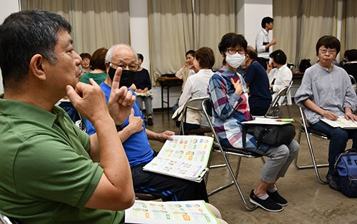 手話で日常を暮らす聴覚障がい者による指導に参加者から「とても伝わってくる」と感嘆の声