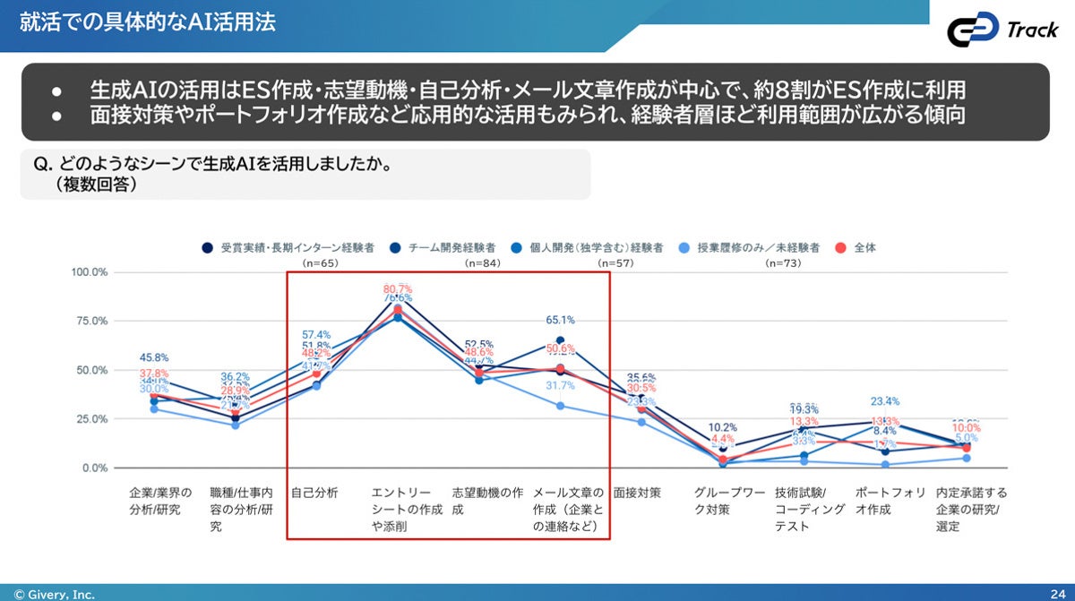 ①84.6%の学生が、就職活動に生成AIを活用。活用シーンとしては、エントリーシート
