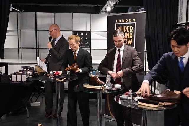 「World Champions of Shoe Shining」は、毎年ロンドンで行われる国際的な革靴の展示会イベント「Super Trunk Show」内で開催される靴磨きの世界大会です。競技ルールは制限時間内(20分間)で新品の靴の片足を磨き上げるというシンプルなもので、評価基準には靴の光沢感やグラデーション、磨く様子や所作などが含まれます。