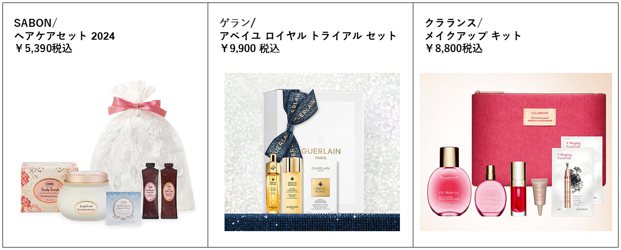 SABONで人気のヘアケアアイテムをお楽しみいただけるセットや、ゲランの「アベイユロイヤル」をラインで体験できる@cosmeBEAUTYDAY限定コフレをギフトボックスでお届け。クラランスからは@cosme BEAUTY DAY限定メイクアップキットがオリジナルポーチ付きで登場。自分へのご褒美や大切な人への贈り物におすすめです。
