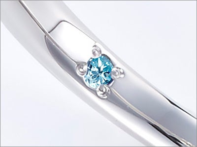 マリッジリングをご成約いただいた方に、花嫁が身に着けると幸せになれると言われる「サムシング フォー」のうちの1つ「青いもの」という意味の「サムシング ブルー」にちなんだ「オーシャンブルーダイヤモンド」のシークレットストーンを1組様につき1石プレゼントいたします。