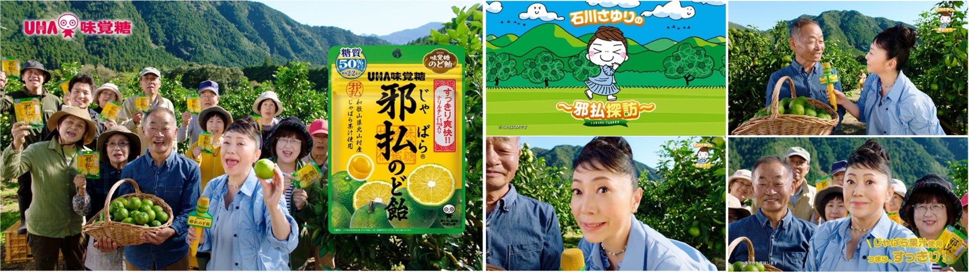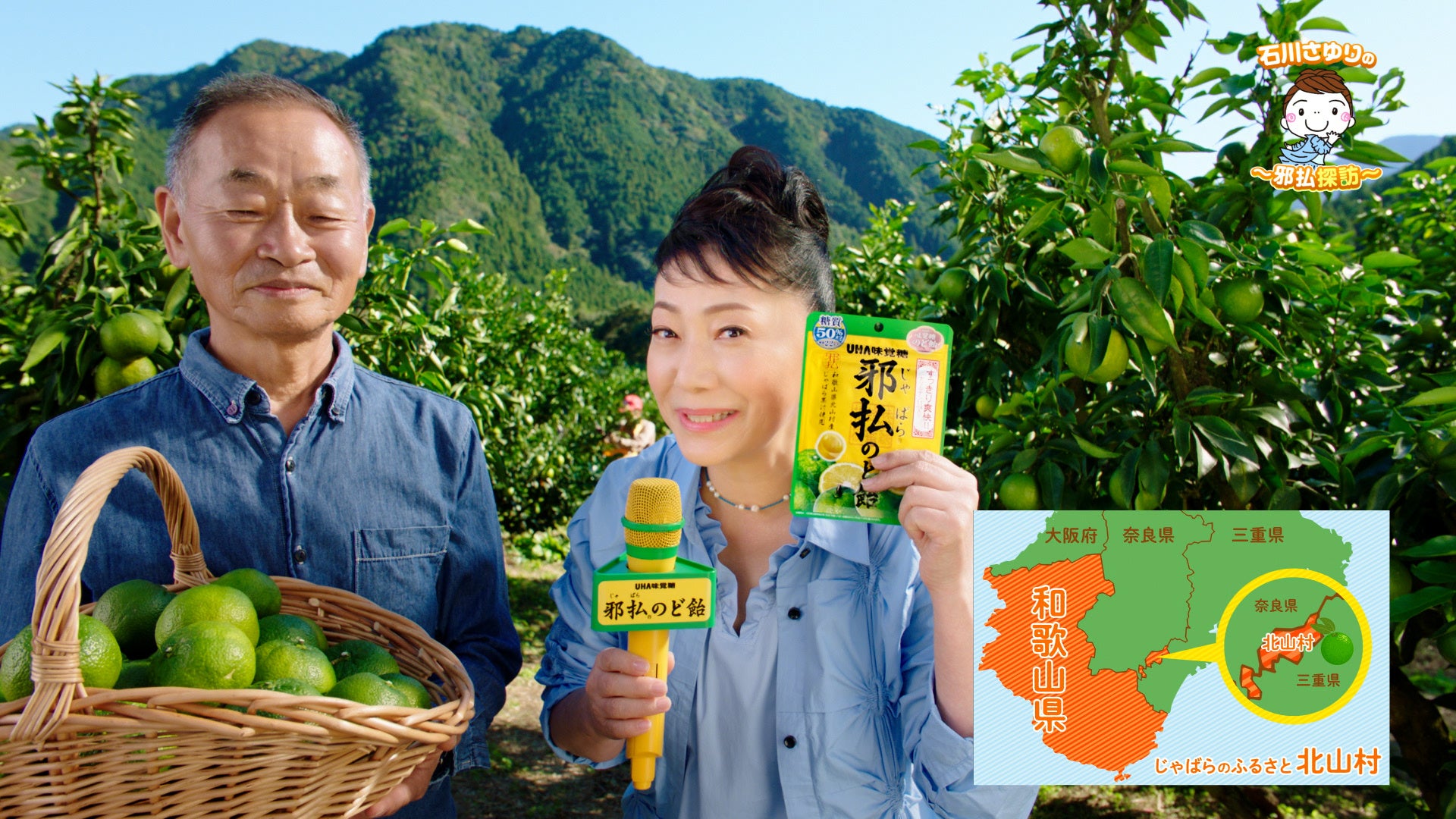 UHA味覚糖株式会社(本社:大阪市中央区、代表取締役:山田泰正)は、幻の果実といわれる「じゃばら」果汁を使用した「邪払のど飴󠄀」のCMを、2月1日(土)に公開いたします。 CMキャラクターの石川さゆりさんにはレポーター役に挑戦いただき、和歌山県北山村に訪問。実際にじゃばら農園で働く、生産者の方にインタビューをする内容となっています。邪払のど飴󠄀の秘密に迫っていく石川さゆりさんにご注目ください!