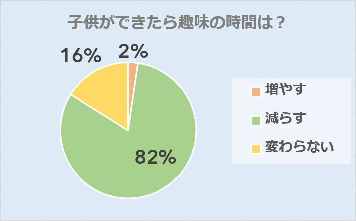 趣味の時間も使う金額も、子供が出来たら「減らす」という人がそれぞれ80%以上を占めました。オタクと言えど、さすがに今のような不安定な世の中では先を考え冷静に対応せざるをえないという認識が伺えます。